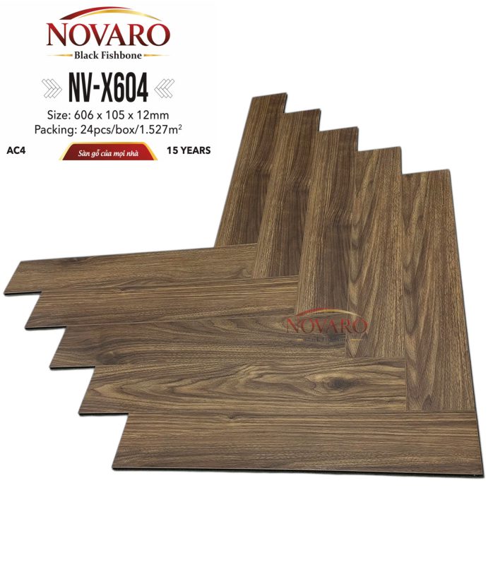 🌰 Sàn gỗ xương cá Novaro cốt đen 12mm Màu nâu trầm hợp nhà phố sang trọng.